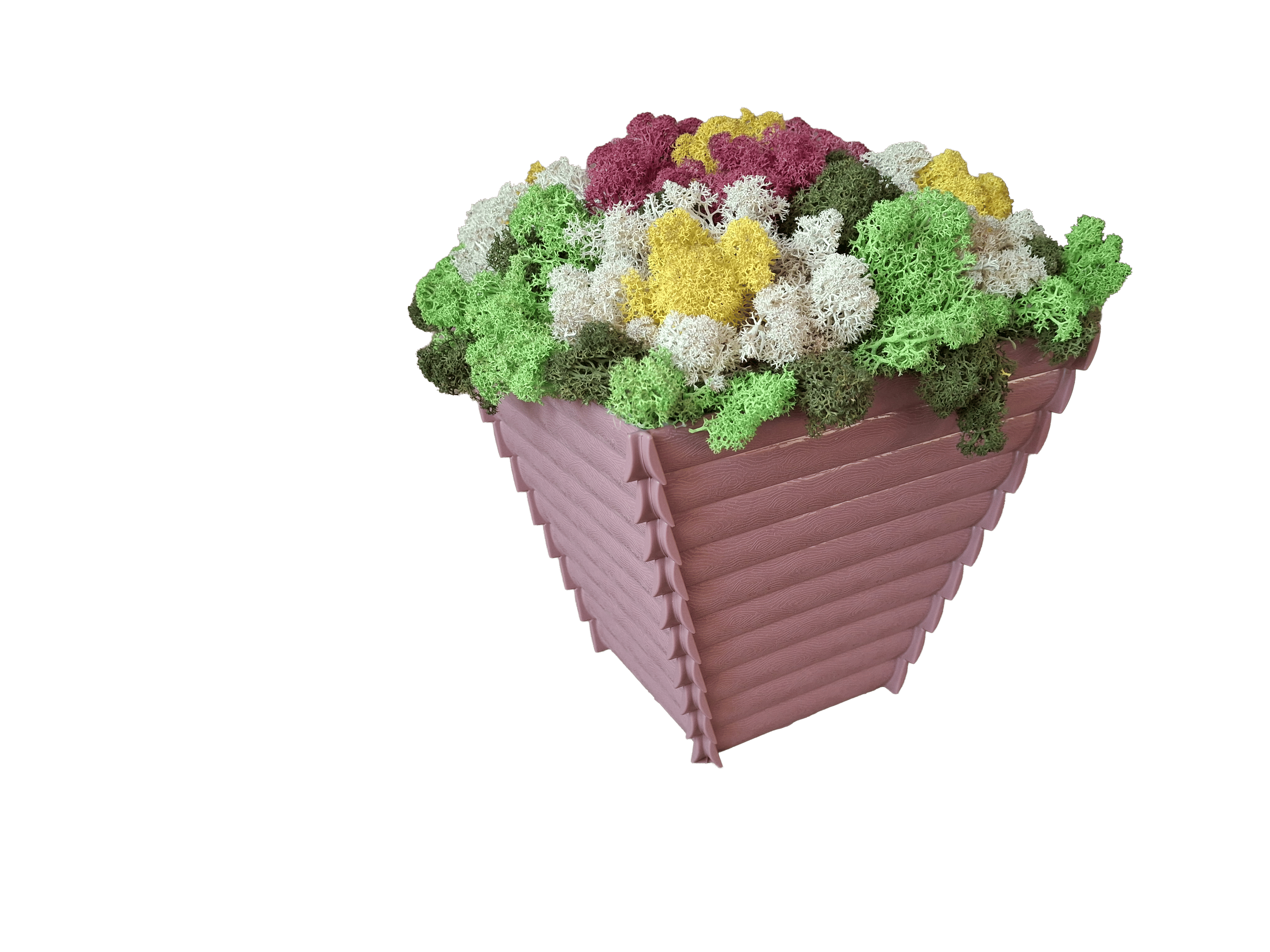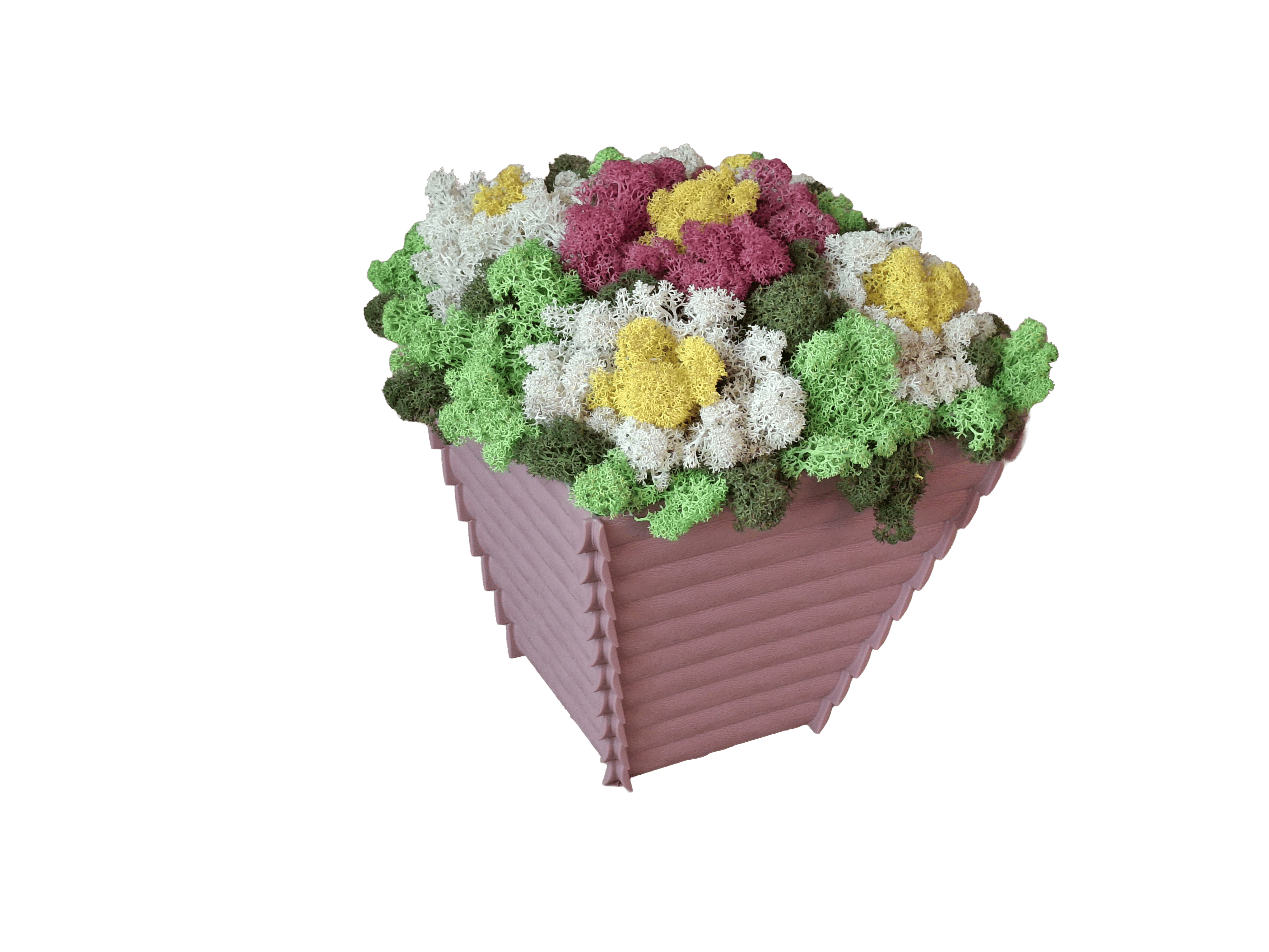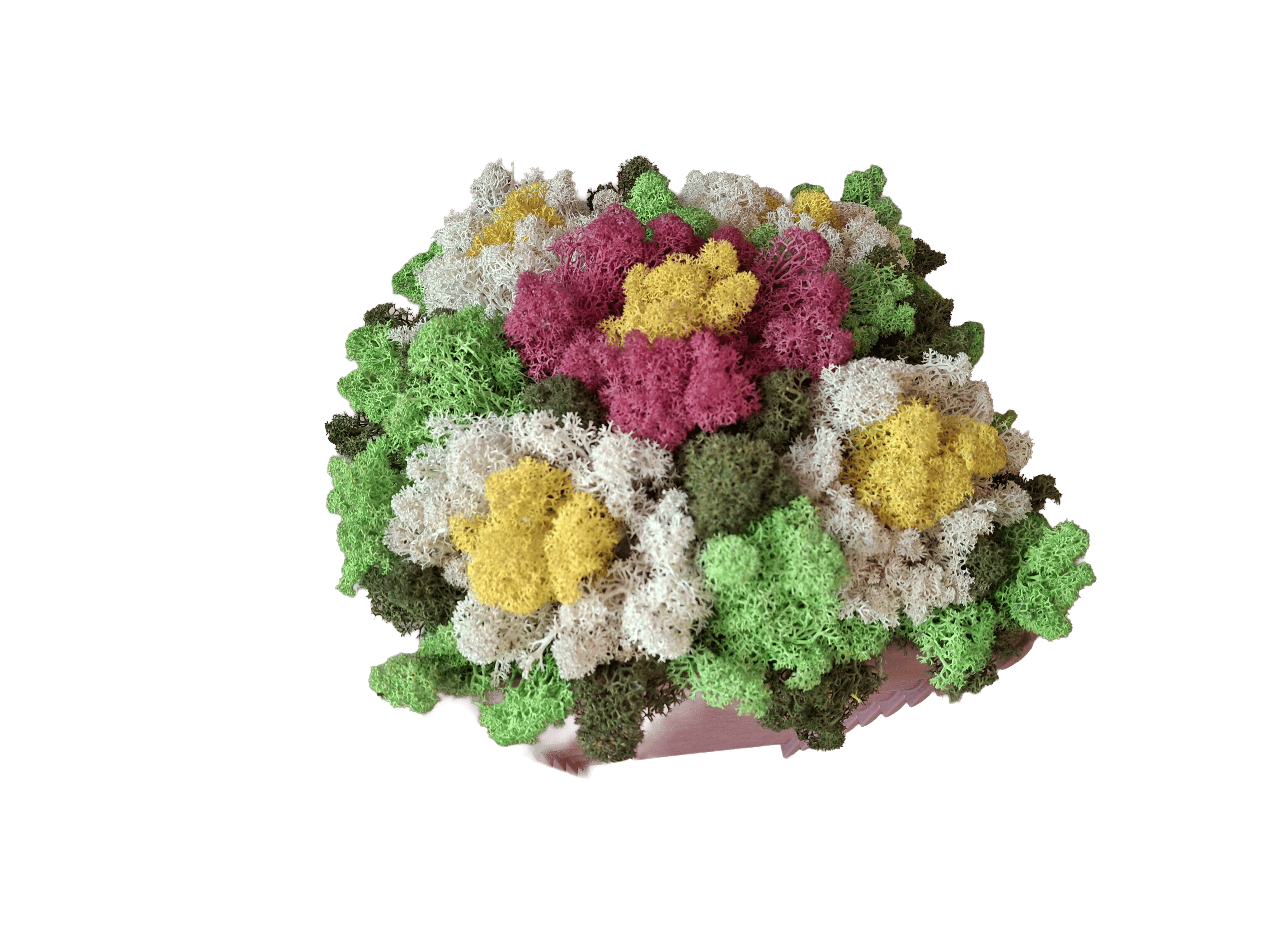Добавете свежест и уют във вашия дом с тази красива кашпа, изработена със скандинавски мъх. Подреден в нежни цветни акценти, мъхът оформя стилна композиция, наподобяваща пролетни цветя – идеален избор за декорация или подарък. Саксията е подходяща както за интериорна украса, така и за специални поводи – имен ден, рожден ден, 8 март или просто като жест към любим човек. Предимства: Естествен скандинавски мъх (стабилизиран) Не изисква поливане и поддръжка Дълготрайна свежест и цвят Ръчно аранжирана композиция Подходяща за подарък и декорация Приложение: Декорация за дом или офис Оригинален подарък Съчетавайки естествена визия и модерна изработка, тази кашпа ще внесе хармония и стил във всяко пространство.